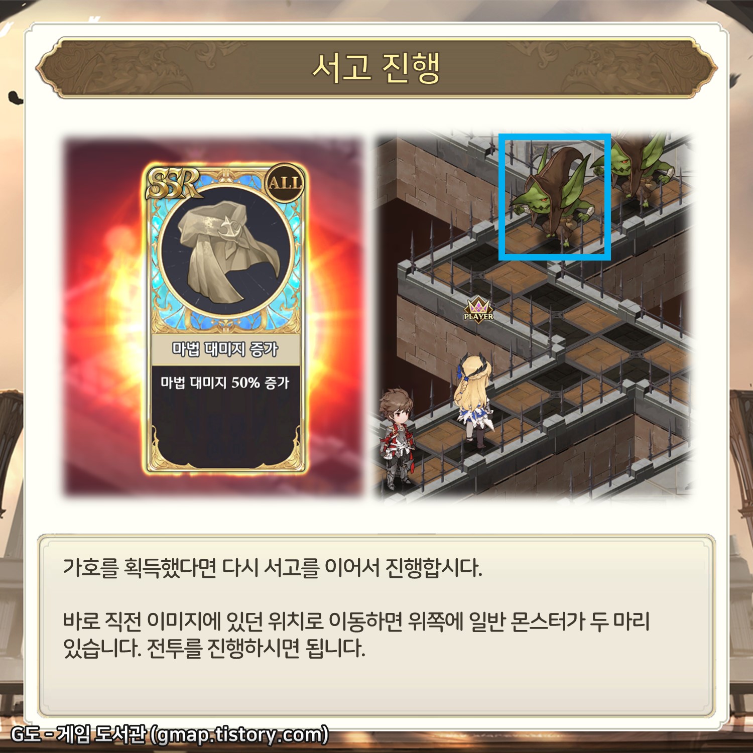 공략에 맞추어 서고를 쭉 진행해 오셨다면 SSR 가호를 획득한 후 다음 전투를 진행할 준비 중이실 겁니다.